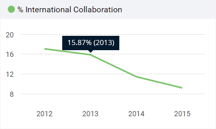 International Collaboration accounts for the articles that have been produced reserchers.